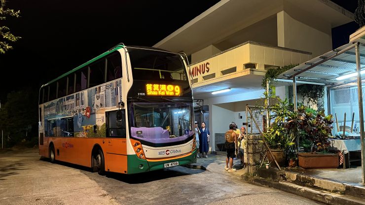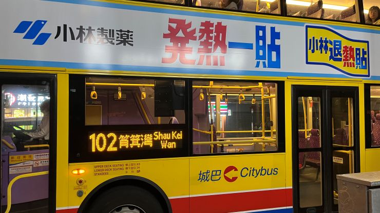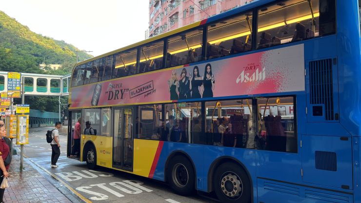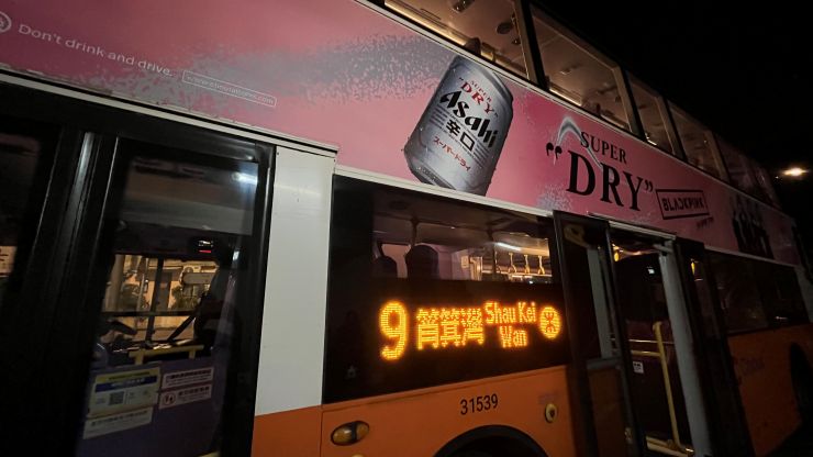 アサヒ・スーパードライのラッピング・バス。 前々回同様、当地時間22:40発のバスでShau Kei Wanまで戻ります。 ↓