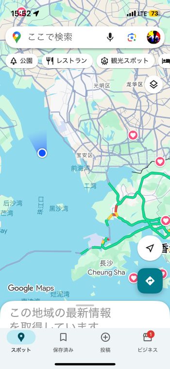 今回はマカオ方向に離陸して左に急旋回するコース。あのあたりがマカオ。 ↓
