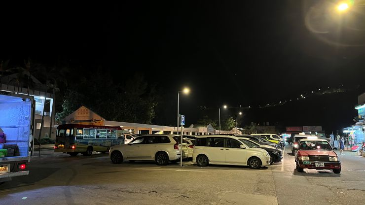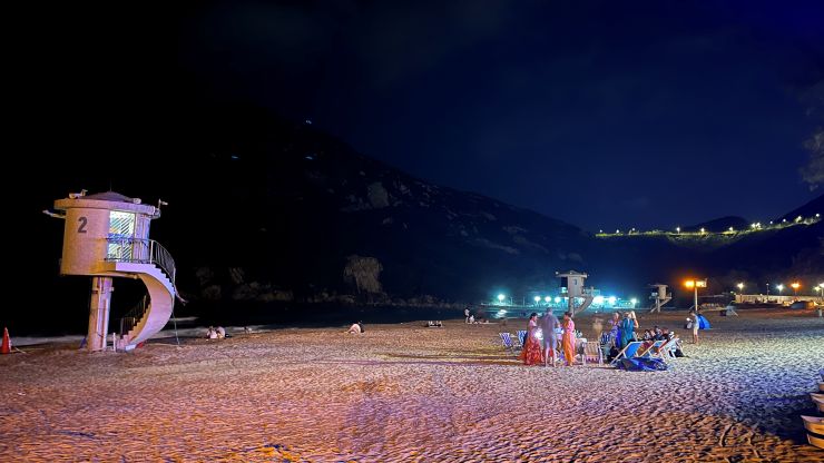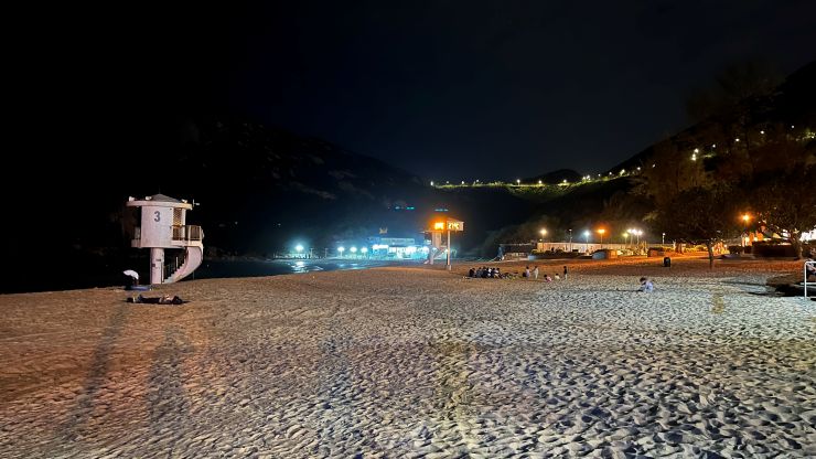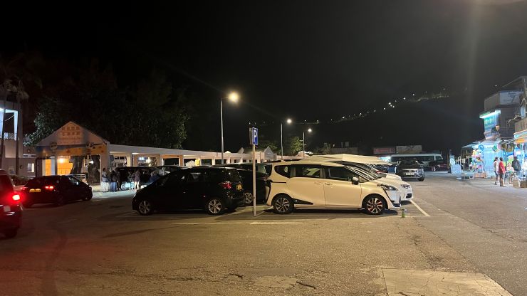 当地時間19時少し過ぎ、石澳泳灘(Sheck O Beach)着。駐車場はまだクルマでいっぱい。 ↓