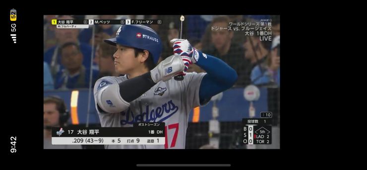 ワールドシリーズ第1戦、ドジャース VS ブルージェイズ。 香港で山歩きしながらロジャーセンターの試合をほぼリアルタイムで見られるって、すごいね。^^
