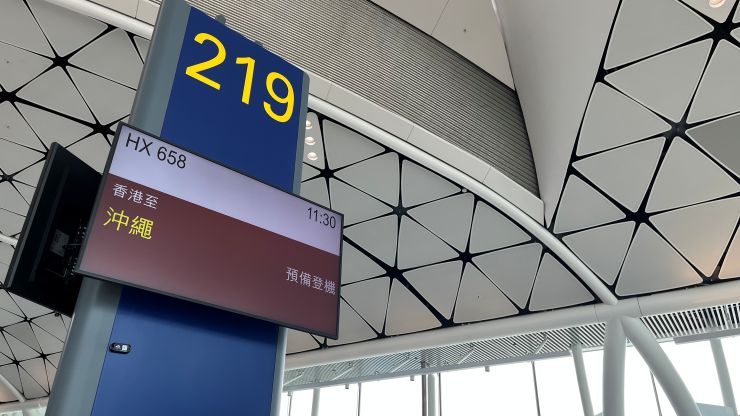本日の出発は219番ゲート。 今回は短距離フライトなので、コスパ重視で8月のダナン以来の香港航空です。LCCなので、出発ゲートはかなり遠くに追いやられています。タラップよりはマシだけど。(笑) フライトは、当地時間11:30発の香港航空658便(HX658)・那覇(沖縄)行 〜 ↓