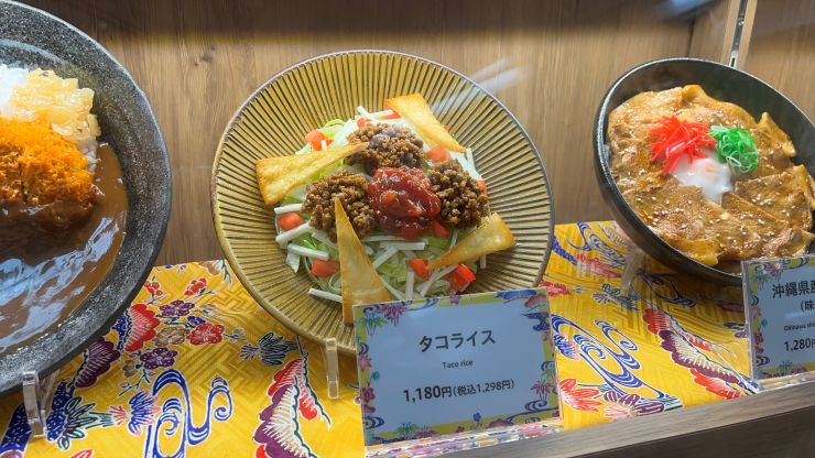 せっかく沖縄に来たのでタコライスでも、と思ったけど、これに1,200円も支払うなら自分で作っても大差ないんじゃないか、と思い踏み止まりました。^^;; ↓