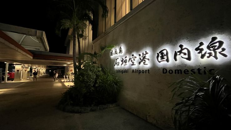 5分の遅延なんて遅延のうちに入らないと思いますが、ほぼ定刻で那覇を出発。離陸してシートベルト着用サインが消えて15分ほどで、もう着陸態勢です。 石垣空港には日本時間20時半着 〜 ↓