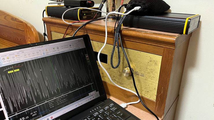 ■ 2025年10月30日(木) 〔 TOP 〕 石垣島ペディション・2日目 石垣島滞在 石垣島ペディション・2日目。^^ 昨夜は、宿にチェックイン後すぐ受信機材をセットアップ。少し前に現地入りされたNさんがアンテナなど一式をご準備くださったお陰で、すぐ帯域記録を開始出来ました。(ありがとうございました!) 素泊まり1泊3,000円の安宿。(笑) 育ちのいいわたしは(←ウソ)こういうところに泊まったことがなく、うーん、こりゃすごいや! トイレ、シャワー共同はいいとして、ヤモリや蟻んこが部屋の中を徘徊していたりで、いやぁ、、、^^;; キャンプ場のバンガローだと思うことにします。(笑)