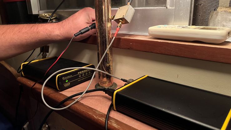 ただでさえ枕が変わるとよく寝られない人であることに加えてこの特異な?環境なので ^^;; 夜中、何度も目が覚めます。(-。-; 早朝05時半、Nさんが起き出してリアルタイムワッチ。何やら「パチパチ」という不明ノイズが出ています。コネクターなど、接続が悪いわけではなさそう。何じゃこりゃ? (-。-; (-。-; (-。-; どこに行っても、やはりノイズは最大の敵ですね。(-。-; (-。-; (-。-; ↓