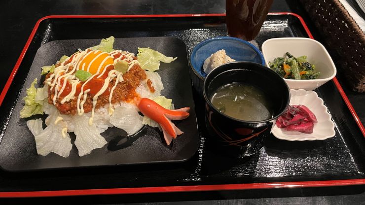 タコライス定食 〜 そうか、生卵を乗せてもいいな!(今度やってみよう!) ↓