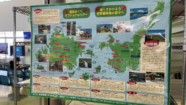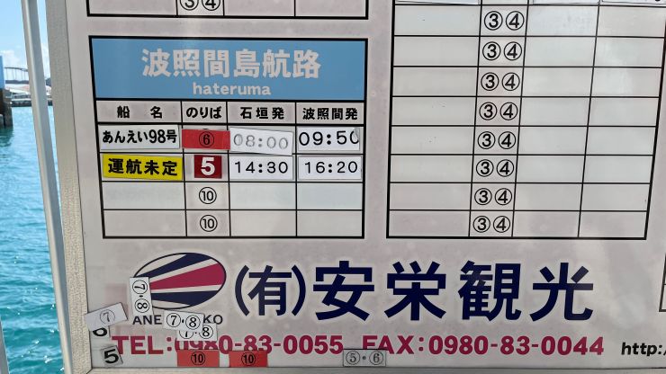 離島ターミナル。 波照間島行は14時半発のフェリーが「運行未定」となっています。一度行ってみたいものだけど、予定通り帰れる保証はないので今回はパス。 ↓