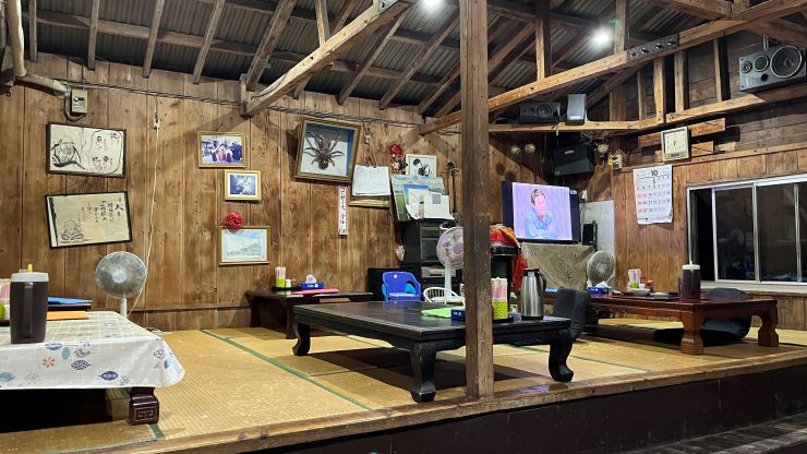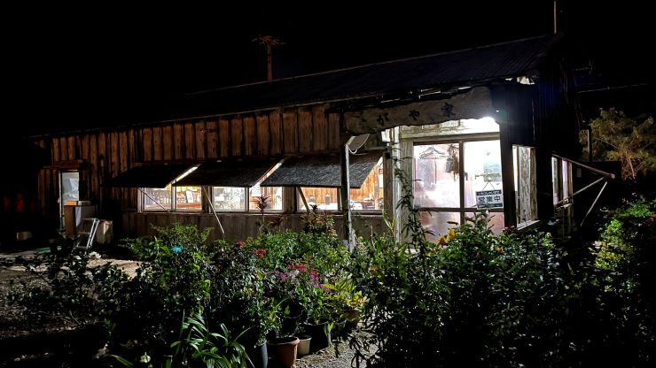夜食は、15分ほど歩いて地元の食堂へ。 ラジオ受信趣味のロケーション最優先で市街地を避けたのはいいとして、周囲にこれといった店やレストランはないので、街灯もない真っ暗闇を歩いてここに辿り着きました。(笑) ↓
