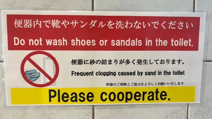 便器内で靴やサンダルを洗うって、、、世の中にはいろいろな人がいるもんだ。 日本語と英語だけじゃ不十分な気もするけどね 〜 (笑) ↓