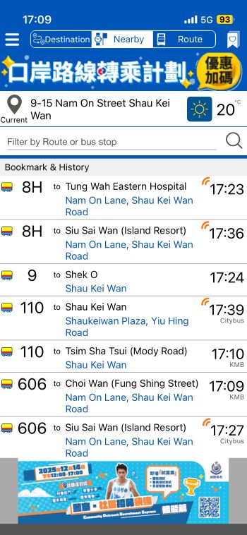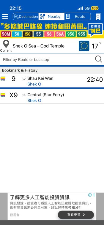 当地時間17:24発・Shek O 行の9系統バスに乗ります。^^ ↓