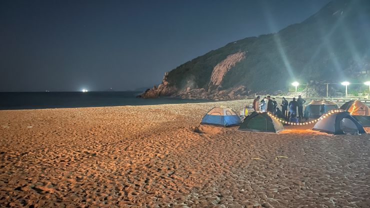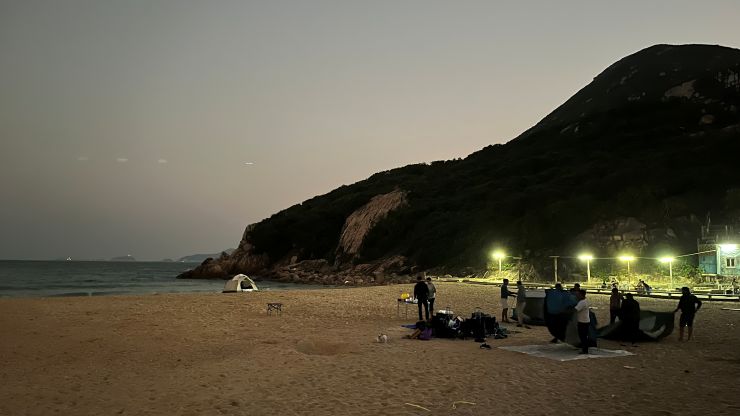 当地時間18時少し前、石澳泳灘(Sheck O Beach)着。 気温は、まだ20度あります。暑くもなく寒くもなく、この時期は急に雨が降るリスクもなく、屋外受信には最適。^^ ↓