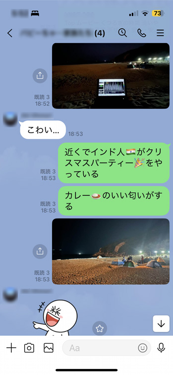 カレーの、いい匂いが鼻を突きます。インドの人たちはビーチでもやっぱりカレーなのか!(笑) 今夜もフィリ中がいい感じで入っています。やっぱり自宅とは違うね 〜 ↓