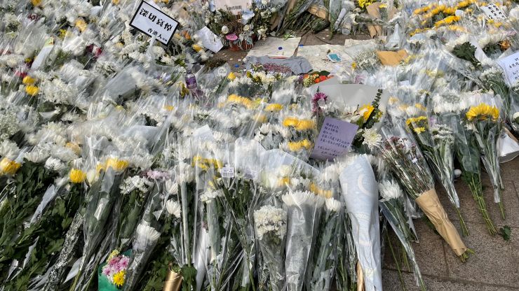 沢山の花が手向けられています。 ↓